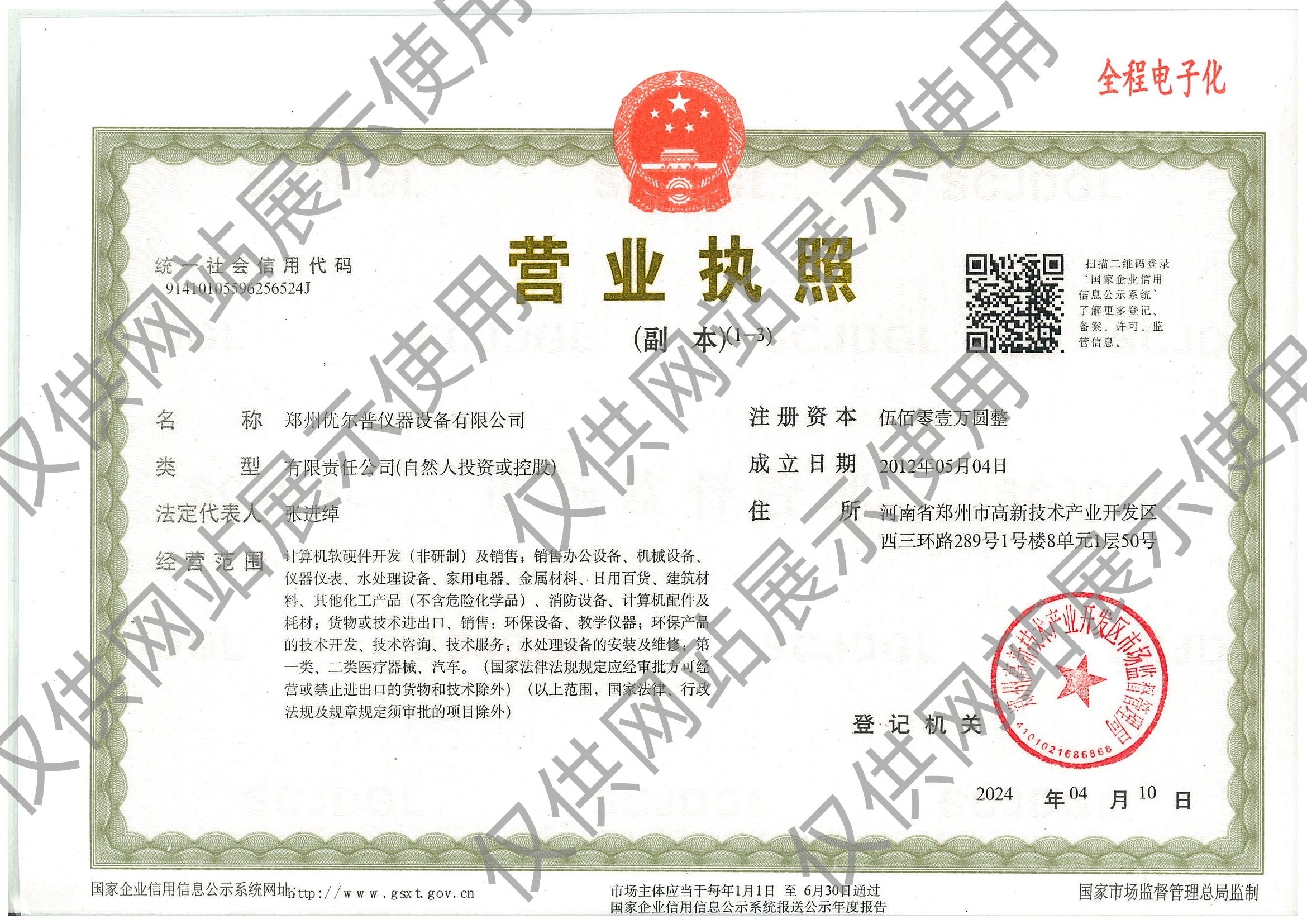 鄭州優(yōu)爾普儀器設(shè)備有限公司注冊資金501萬元,所售純水機(jī)等儀器產(chǎn)品通過ISO9001質(zhì)量體系認(rèn)證、歐盟RoHS安全認(rèn)證等多項(xiàng)認(rèn)證,所屬集團(tuán)公司獲得3A級(jí)企業(yè)認(rèn)證
